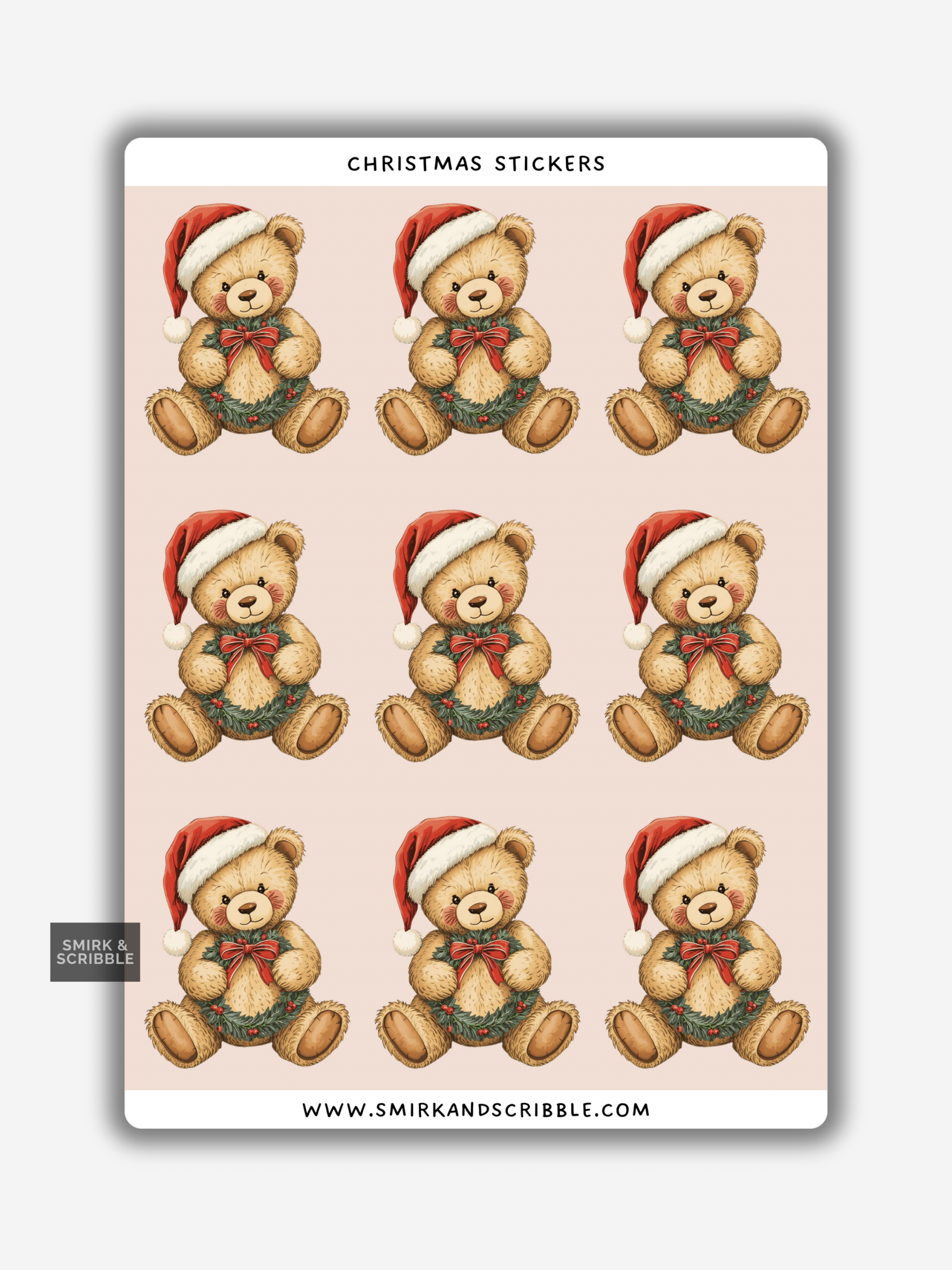 Add a cute festive touch with these Christmas teddy bear stickers. Perfect for gifts, cards, parcels, and packaging.