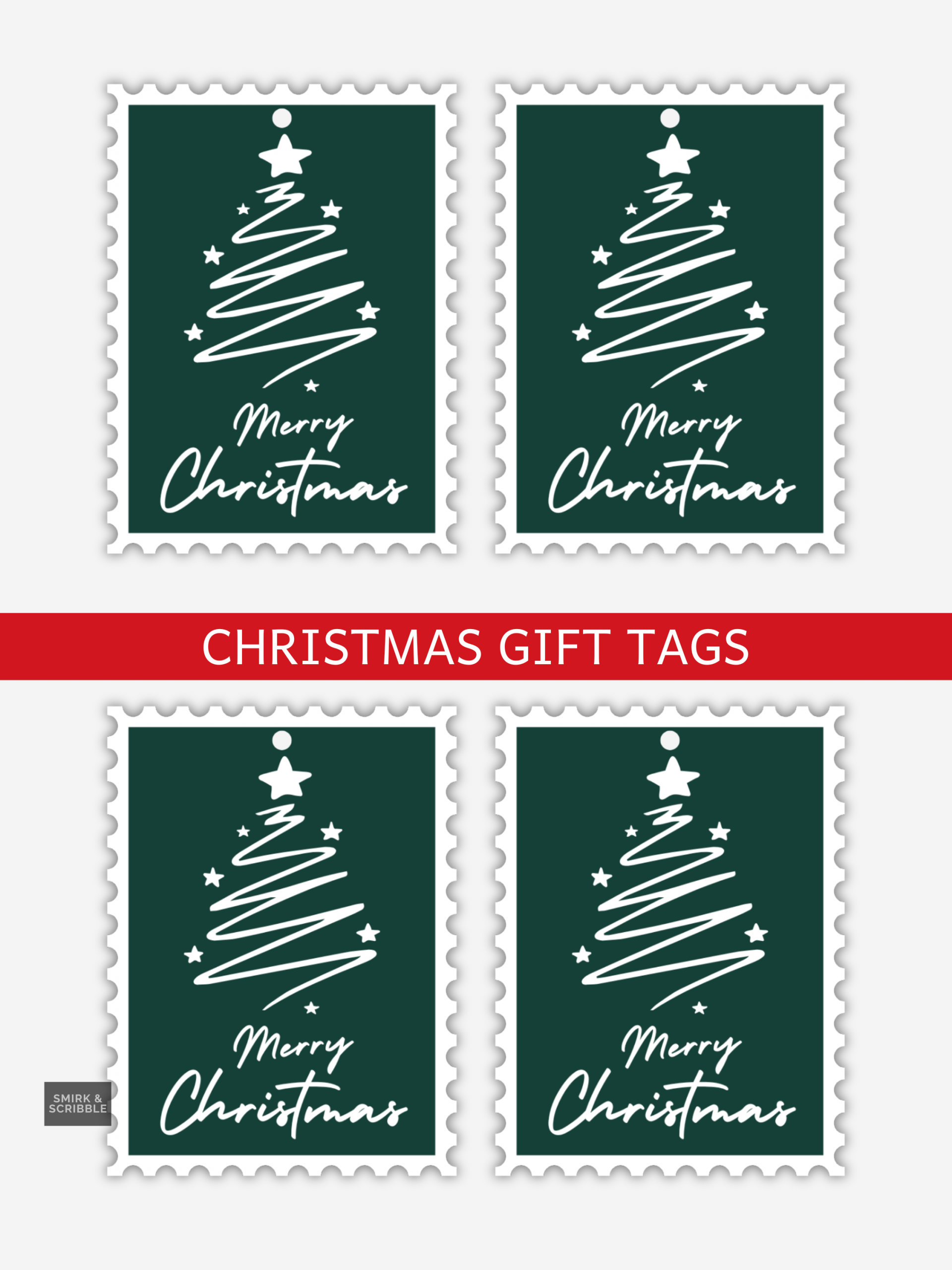 These Green Merry Christmas Tree gift tags add a bold and stylish touch to your festive wrapping. Each tag features a clean white line-art Christmas tree on a deep green background, paired with the words “Merry Christmas.” The stamp-style border gives each tag a neat and classic finish. This simple and modern design suits adults who enjoy elegant Christmas themes with a strong festive feel.
