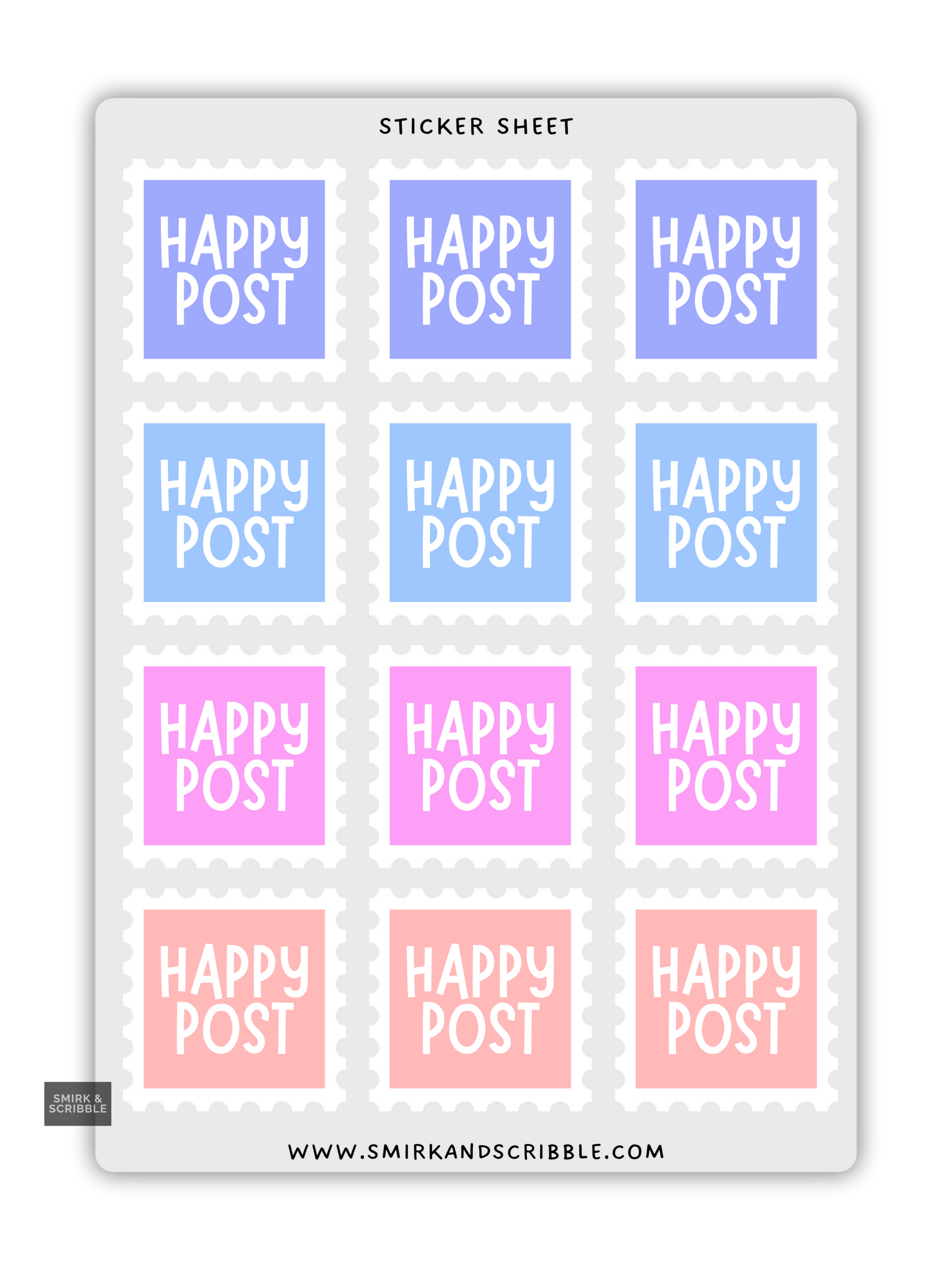 Novelty postage style stamp sticker sheet. Printed on premium matte vinyl. Use for decorating cards, letters, parcels and other mail.